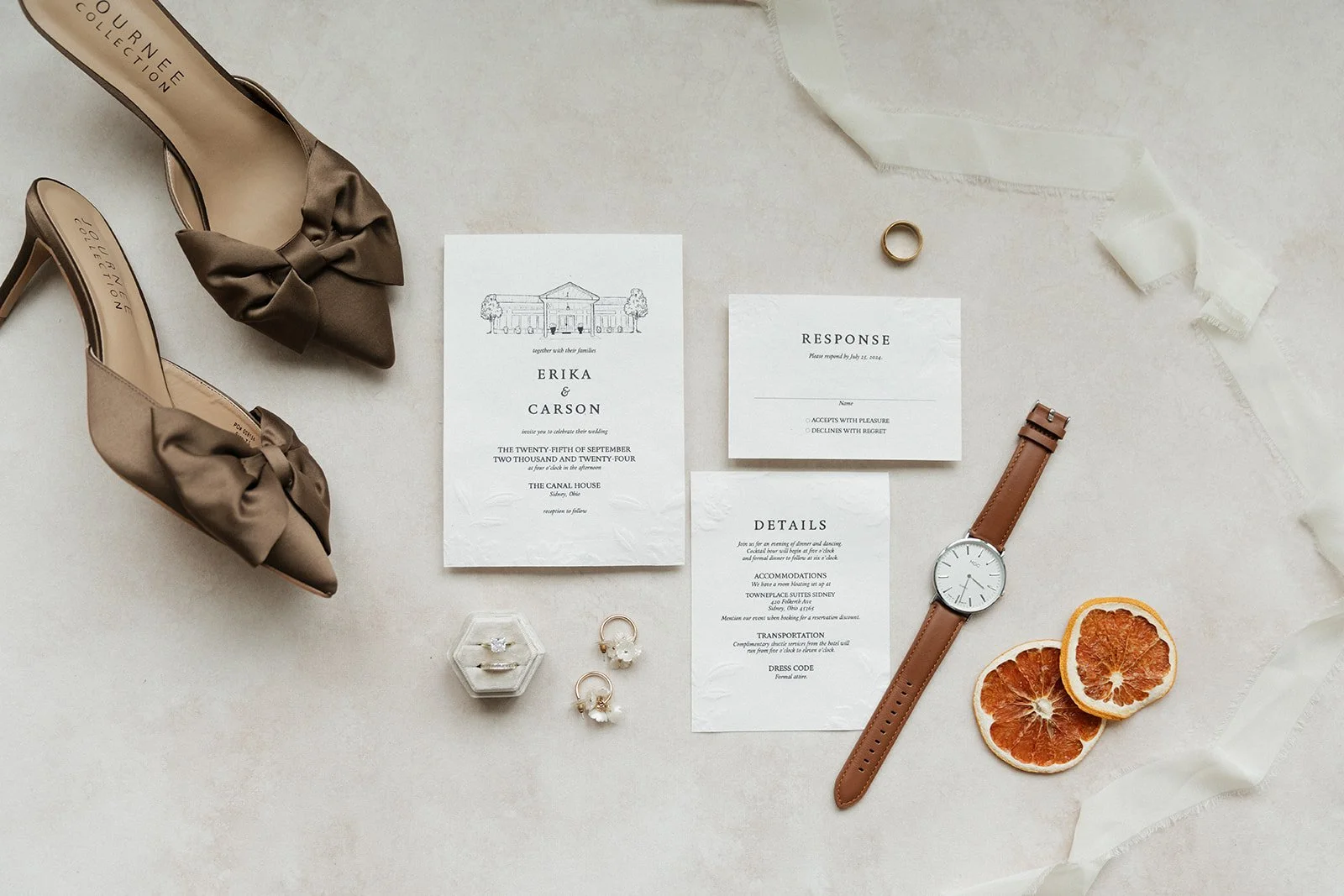 Your wedding invitations are your guests’ first introduction to your wedding celebrations. They communicate how your personalities and unique style will be found in the wedding ambiance. Visuals like typography, illustrations, and wording choice give your guests a first-hand look into how your wedding will feel before they even step foot into the venue!
